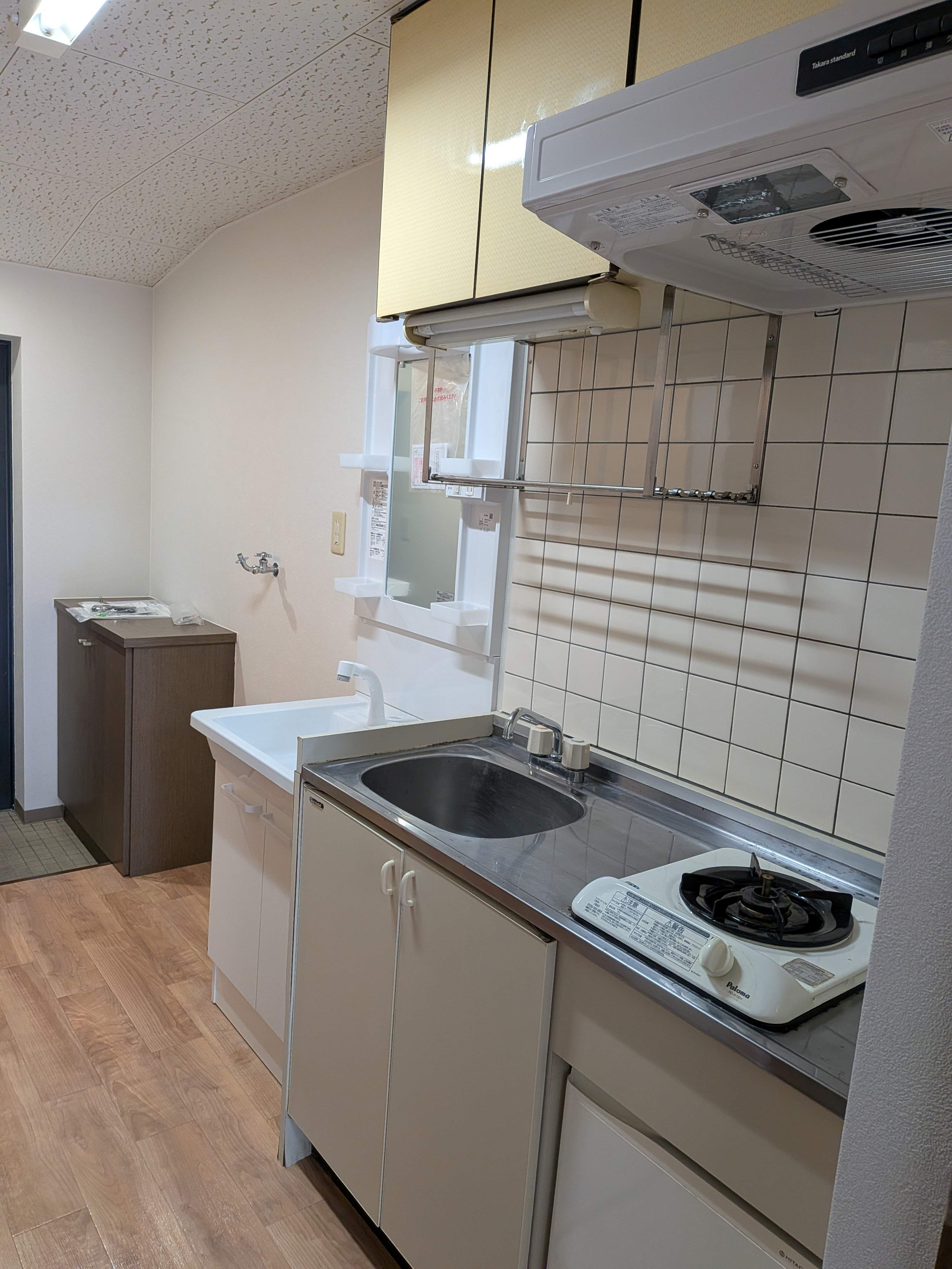 | 受水槽、都市ガス、公共下水、エアコン(新設)、洗面台(新設)、シューズボックス、室内洗濯機置き場、収納、バルコニー、照明器具 |